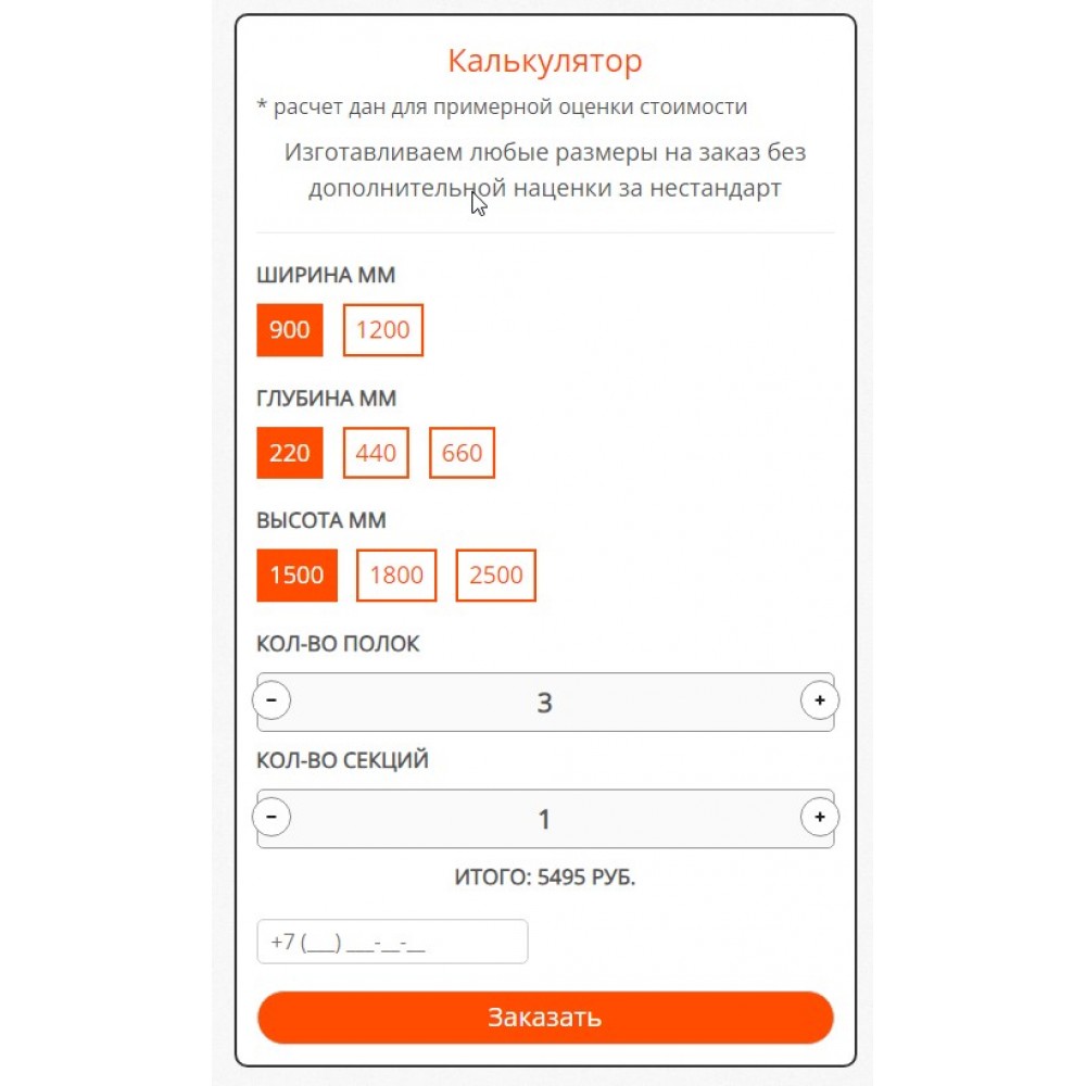 Модуль "Калькулятор стеллажей" от веб-студии Максвебсайт г. Новая Ляля