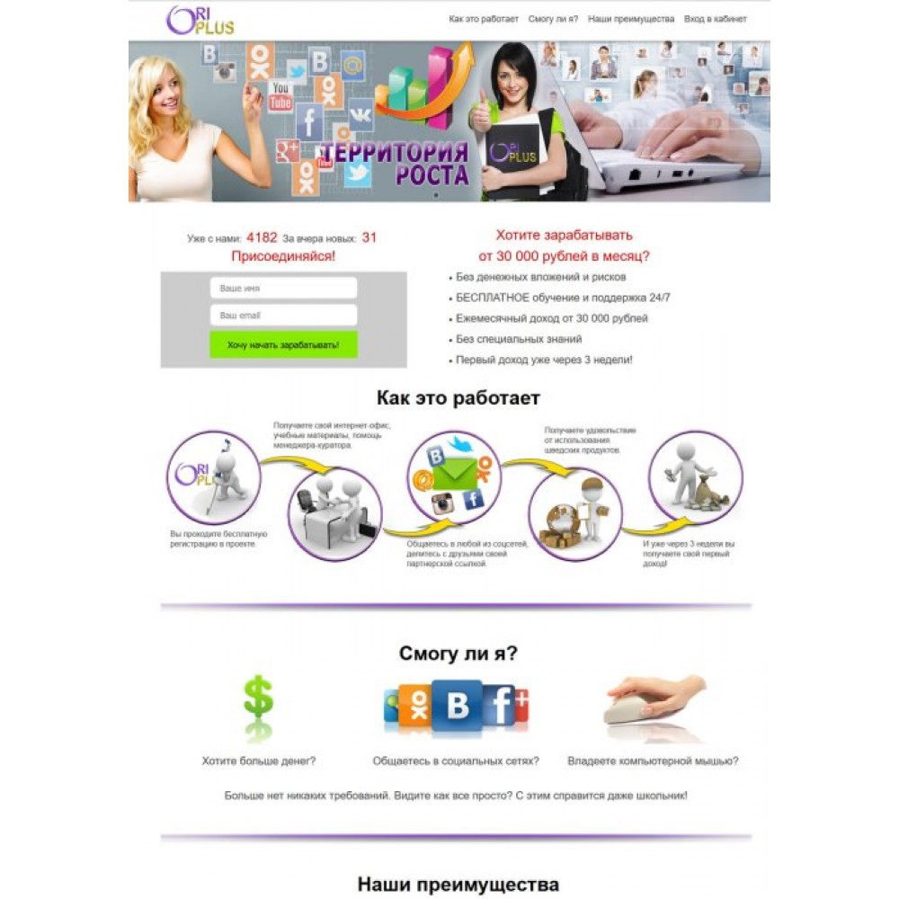Лендинг с обучающим кабинетом для менеджеров Орифлейм от веб-студии Максвебсайт г. Новая Ляля